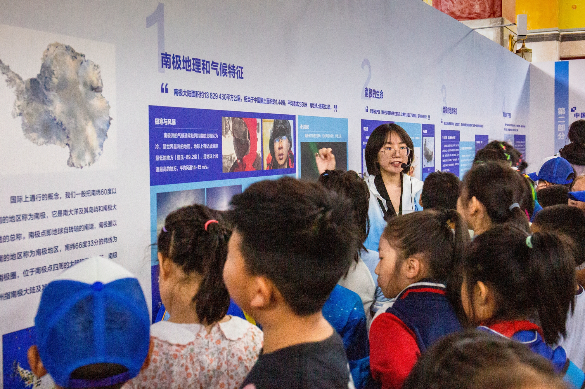 随后,科普志愿者张心源同学带领参与活动的亲子家庭依次参观地质博物馆的五个展厅,近距离观察展柜里的陨石样品,让孩子们对陨石有更为直观的认识。在恐龙厅,小朋友和家长们对身高6米的嘉荫卡龙化石惊叹不已,现场掀起一阵热闹与感叹声浪。参观尾声,大家移步至南极科考专题展区,张心源同学带领大家系统回顾了中国极地科考的发展历程,重点解读了“南极精神”并列举了吉林大学科研团队在南极科考中的突破性成果。活动最后,地质博物馆为每位参与活动的儿童颁发了“科普先锋少年”荣誉证书。